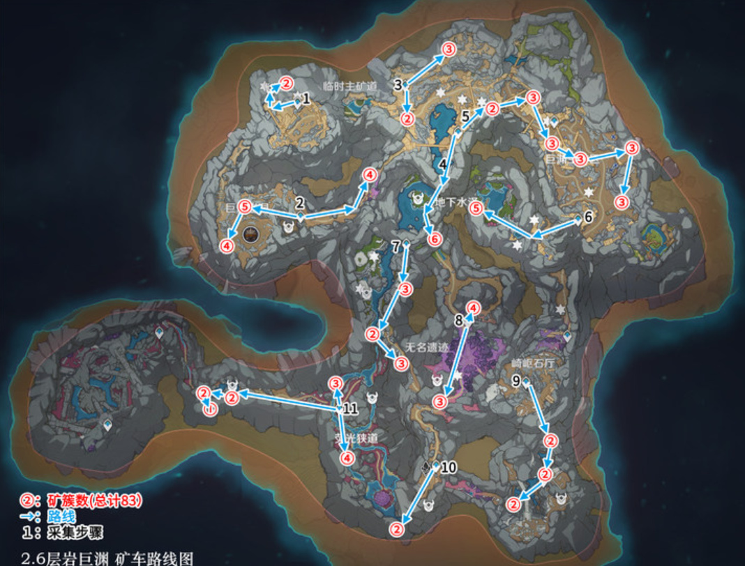 需要说明的是:由于层岩巨渊的高低层次错综复杂,所以小伙伴们可以先跟着视频跑几次,等自己熟悉连线以后,就可以直接跟着地图上的标记走了。